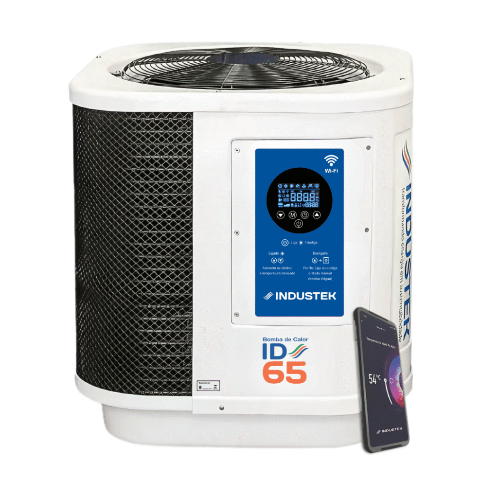 Tecnologia e economia para aquecer sua piscina com eficiência. A bomba de calor Industek ID oferece alto desempenho com baixo consumo, ideal para quem busca uma solução confiável, robusta e acessível. Com sistema On/Off inteligente, aquece a água aproveitando o calor do ar externo e mantém a temperatura estável automaticamente, desligando e religando conforme necessário.